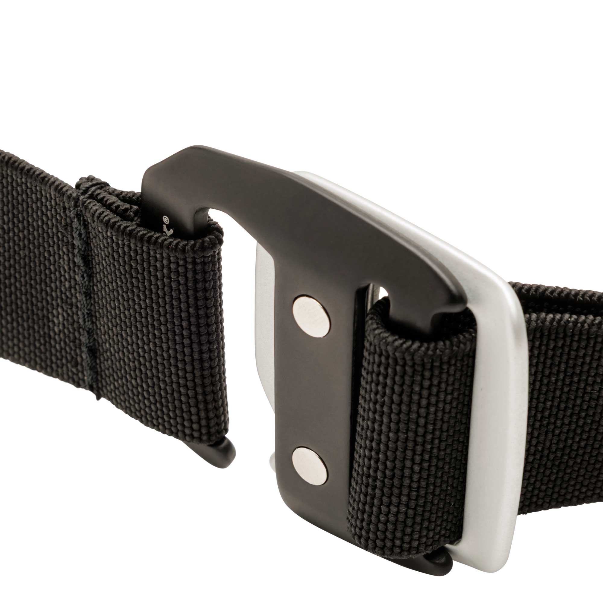 バックルには、航空機グレードアルミニウムを使用した**E38スライドバックル(シルバー/ブラック)**を採用。高い耐久性と安定したホールド性能を発揮します。