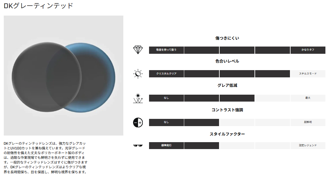 レンズ:クリア/クリア曇り止め/イエロー/5050/グレーティント/グレーグラデーション/グレー偏光/グレー偏光+遮熱/グレーミラーティント